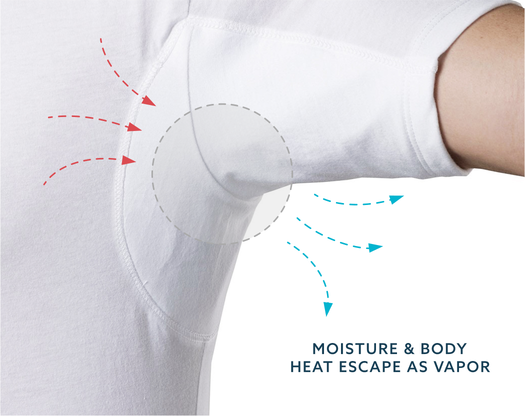 Hydro-Shield®, our patented, clinical-grade sweat proof material, was designed to completely block sweat from showing through your outer layers.